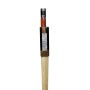 La poignée en cuir chèvre noir, souple et agréable au toucher, assure une excellente adhérence et un bon confort lors des sessions de jeu prolongées. Enfin, la tête de baguette bénéficie d’une finition octogonale, renforçant la structure de l’archet et contribuant à sa longévité sans altérer ses qualités de jeu.