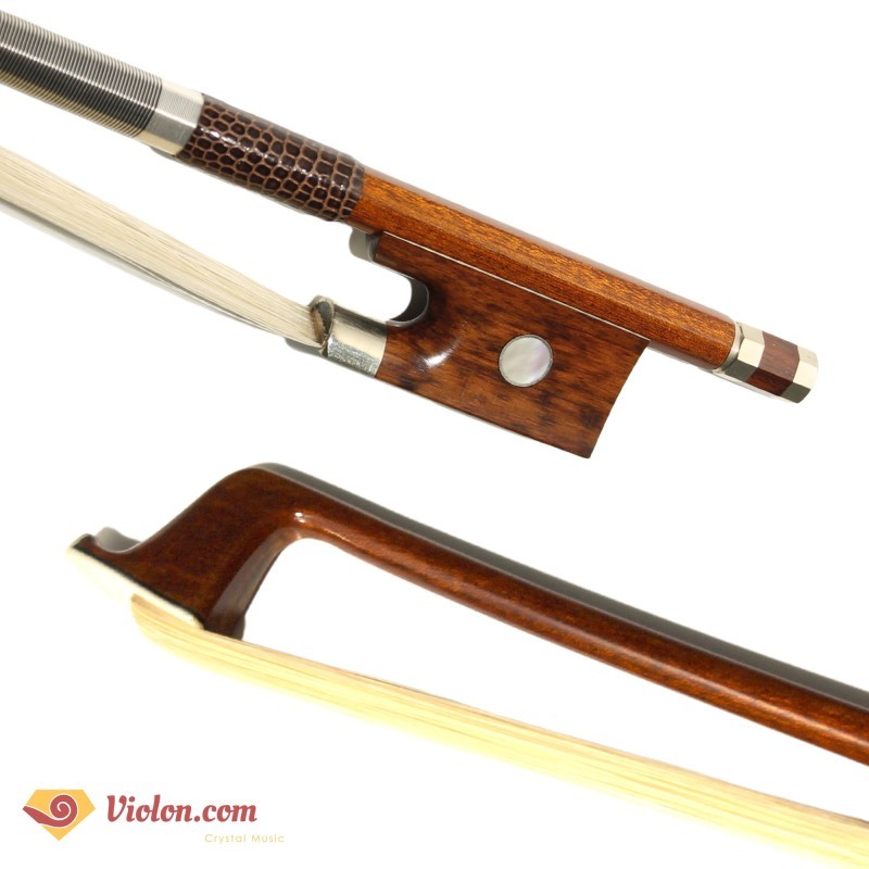 L’archet tient bien la cambrure avec un équilibre correct entre la hausse et la baguette. Le carbone imite le bois. Honnête.