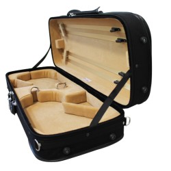 Le second étui double s’adresse cette fois-ci aux propriétaires de violon et d’alto qui souhaitent transporter leurs deux instruments en même temps. Les deux côtés de l’étui sont rentabilisés par l’installation de deux compartiments qui s’adaptent à un violon de taille 4/4 et à un alto dont les dimensions démarrent à partir de 38 centimètres jusqu’à 42.